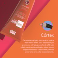 Etapa focada no Córtex: regenera e reestrutura a camada principal do fio, recuperando massa proteica e equilíbrio da elasticidade, com efeito anti-frizz e brilho instantâneo.