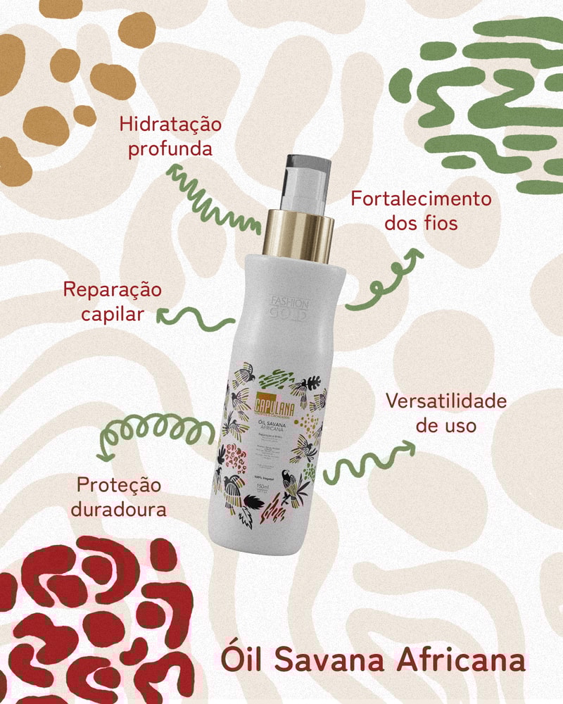 O Óil Savana Africana é um blend luxuoso de óleos de Baobá, Marula, Manketti e Moringa que hidrata profundamente, repara danos e sela as cutículas, reduzindo pontas duplas e protegendo contra agressões diárias. Textura leve, multifuncional e com aroma marcante.