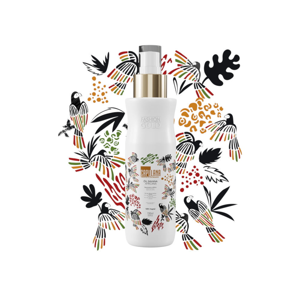 Contém óleos de Marula e Manketti, semente de Crambe e extrato de Linhaça, que hidratam profundamente, protegem do calor e dos raios solares, mantendo os cachos definidos e saudáveis.